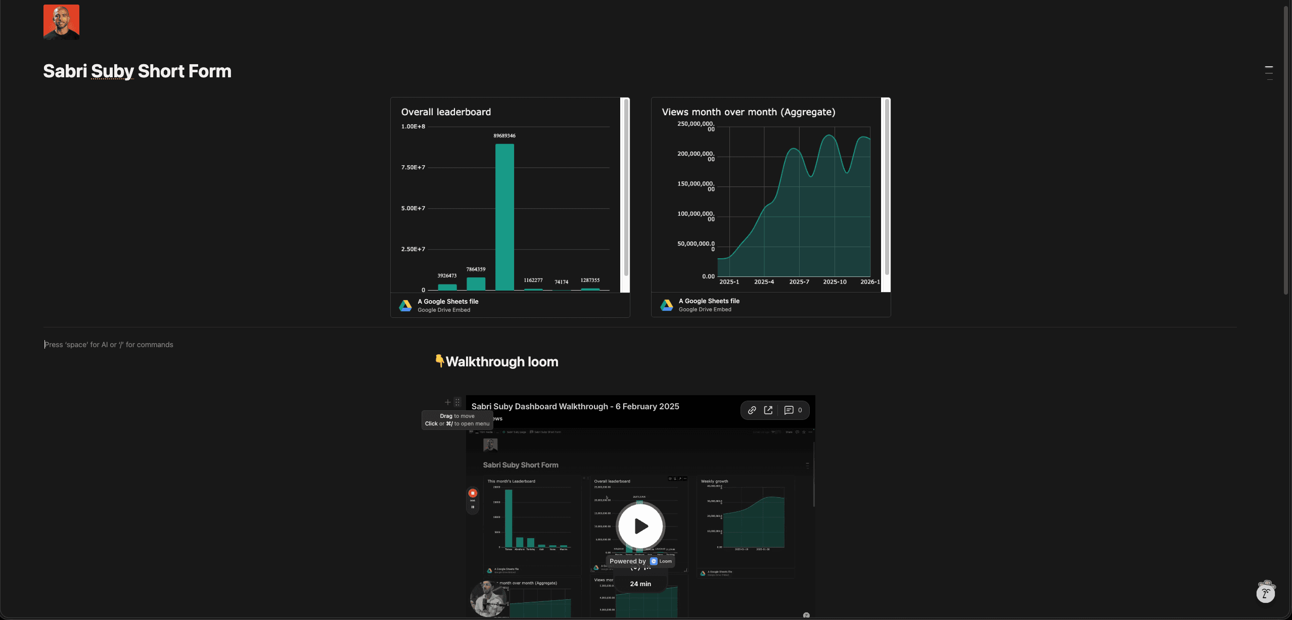 Sabri Suby needed a systematic approach to scale his content distribution beyond his main channel. We implemented the same sub-account distribution strategy we pioneered for Iman Gadzhi, built a custom dashboard to track his content team's performance, and managed 3 of his branded accounts to establish multi-platform presence.
